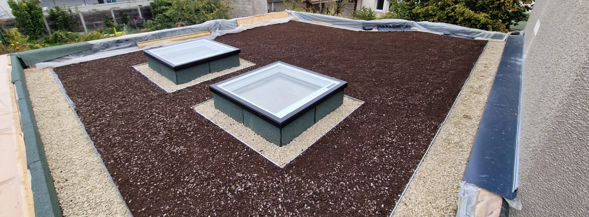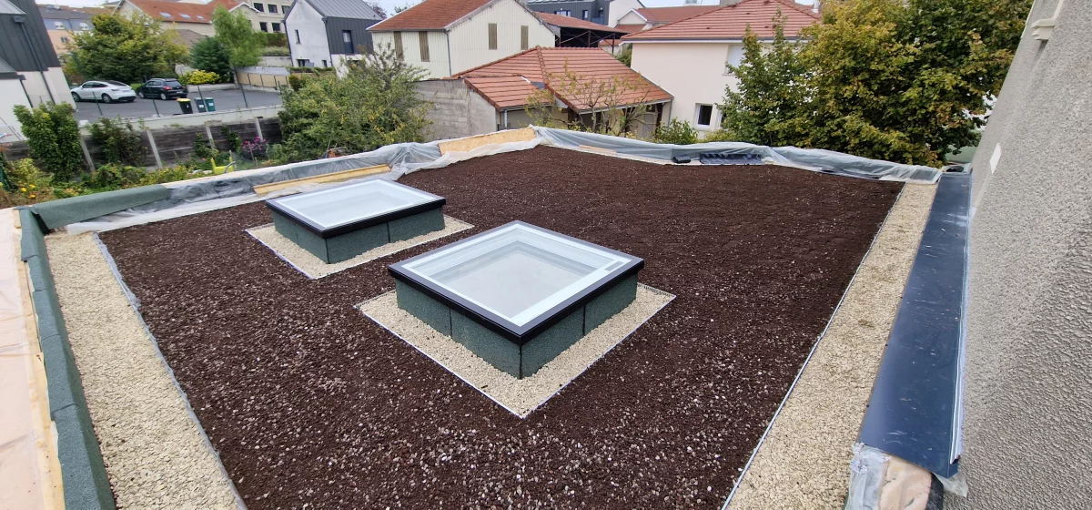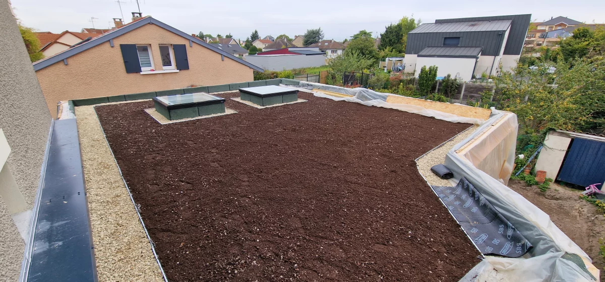 Mise en place de la végétalisation en toiture sur étanchéité avec une bonne isolation pour un meilleur confort été/hiver.