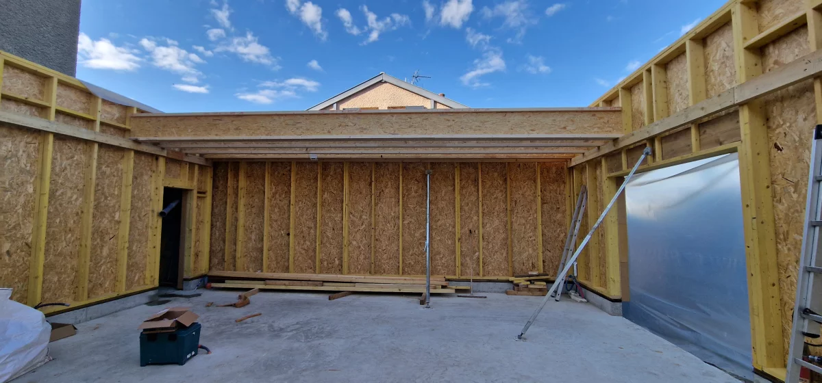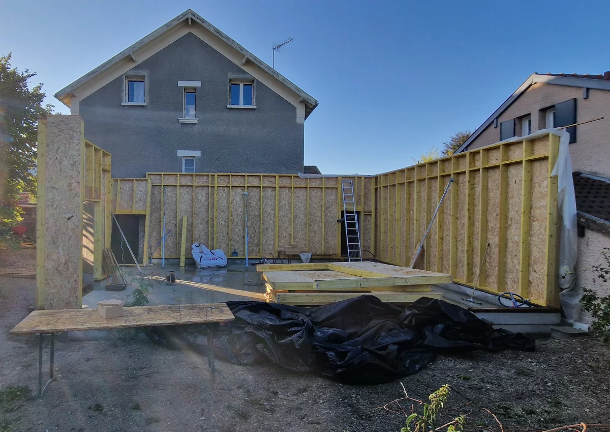 Construction d'une extension en murs à ossature bois chez un particulier à Châlons-en-Champagne.